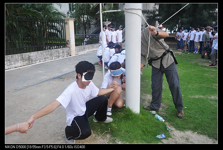 同事们有欢笑,有泪水,有成功,有失败,经历了同起同坐,齐齐翻牌游戏,高空断桥,风雨同路,真人站,野餐等等项目,在这些过程中,风雨同路是我们经历的最难忘的,在种种困难中,我们一同走过,不管途中有多艰难,我们都彼此不放手,就像天使在前面拉着你走向光明,但是魔鬼也同时拉着你走向黑暗,这过程是多么的艰辛,痛苦呀!也有很多人想放弃,但我们坚信同一个观念,不管有多艰难,都不能使对方受到伤害,一条心的走下去。
