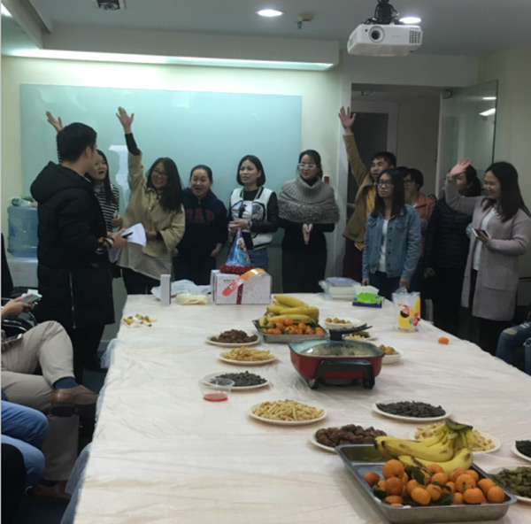 总部下午茶火热进行的同时,火炼树办公的同事的下午茶活动也如期举行,他们把几张桌子拼成一个大桌,吃着火锅,总部稍为简陋的办公环境并没有削减大家对下午茶活动的参与热情。