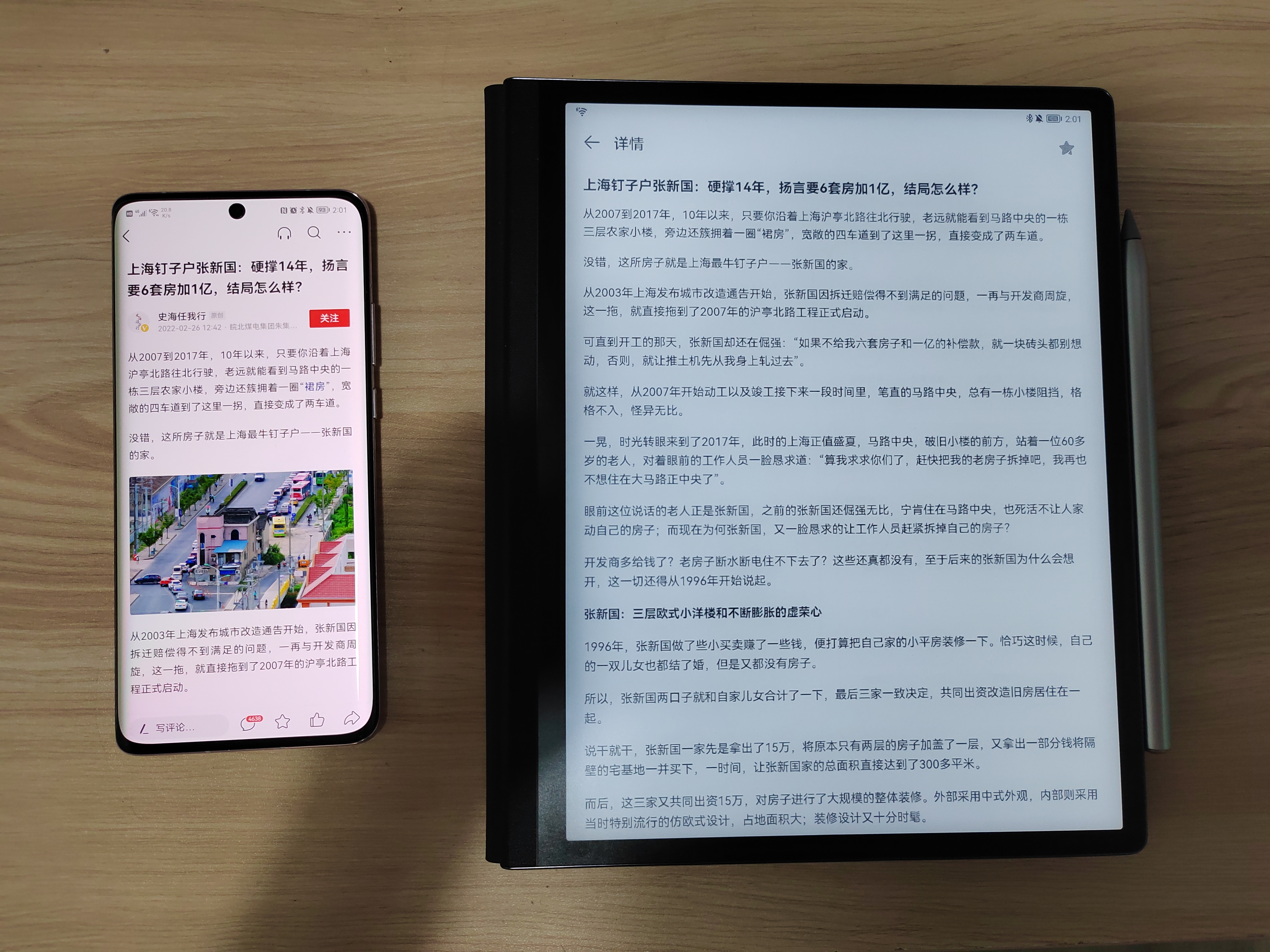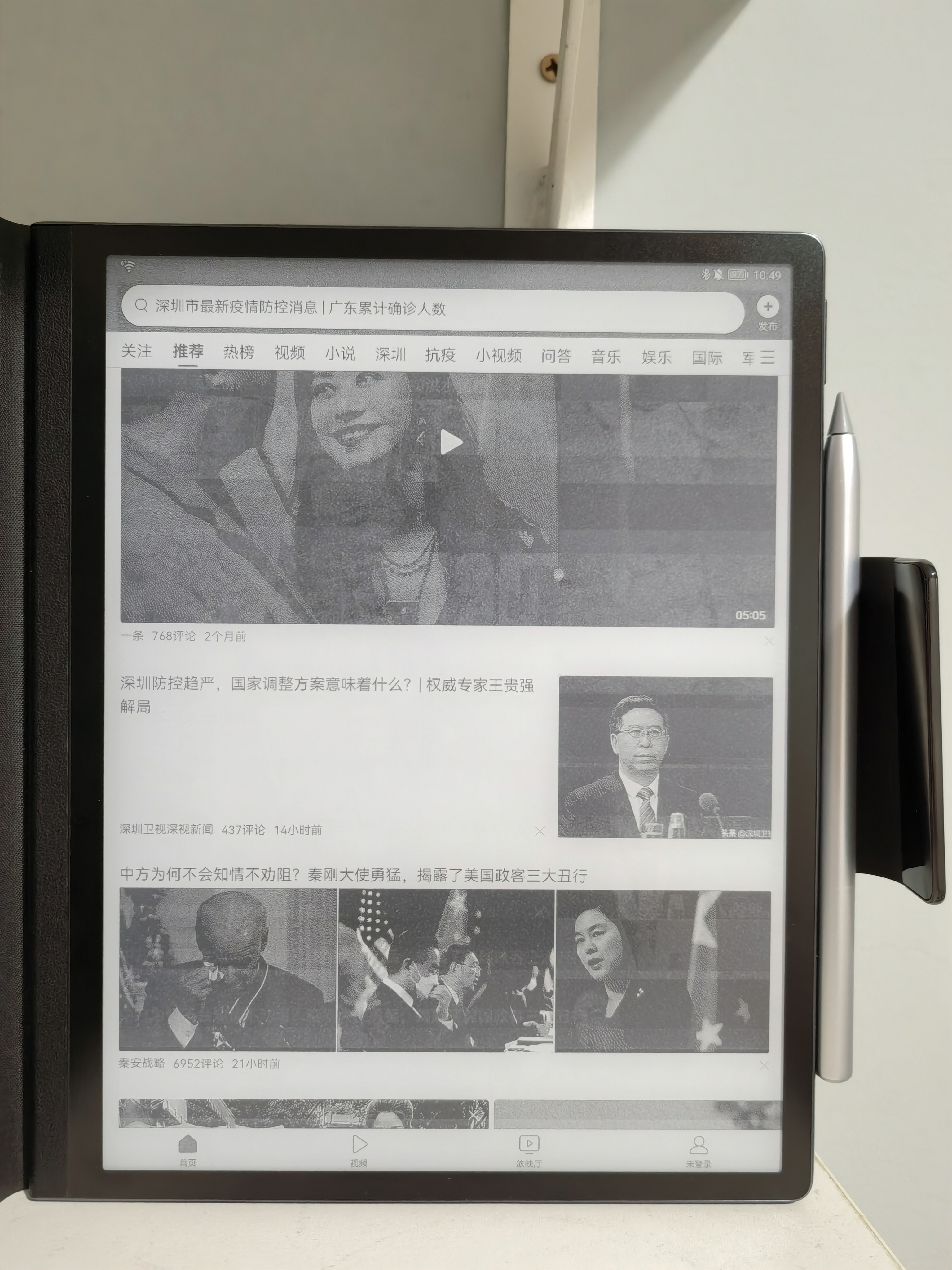 举个栗子,打开今日头条,点击其中一条新闻,进入以后,下拉通知栏找到超级终端,点击HUAWEI MatePad Paper,不一会新闻的界面就直接流转到墨水屏上,手机上看视频、刷微信也不会影响到墨水屏的画面显示。