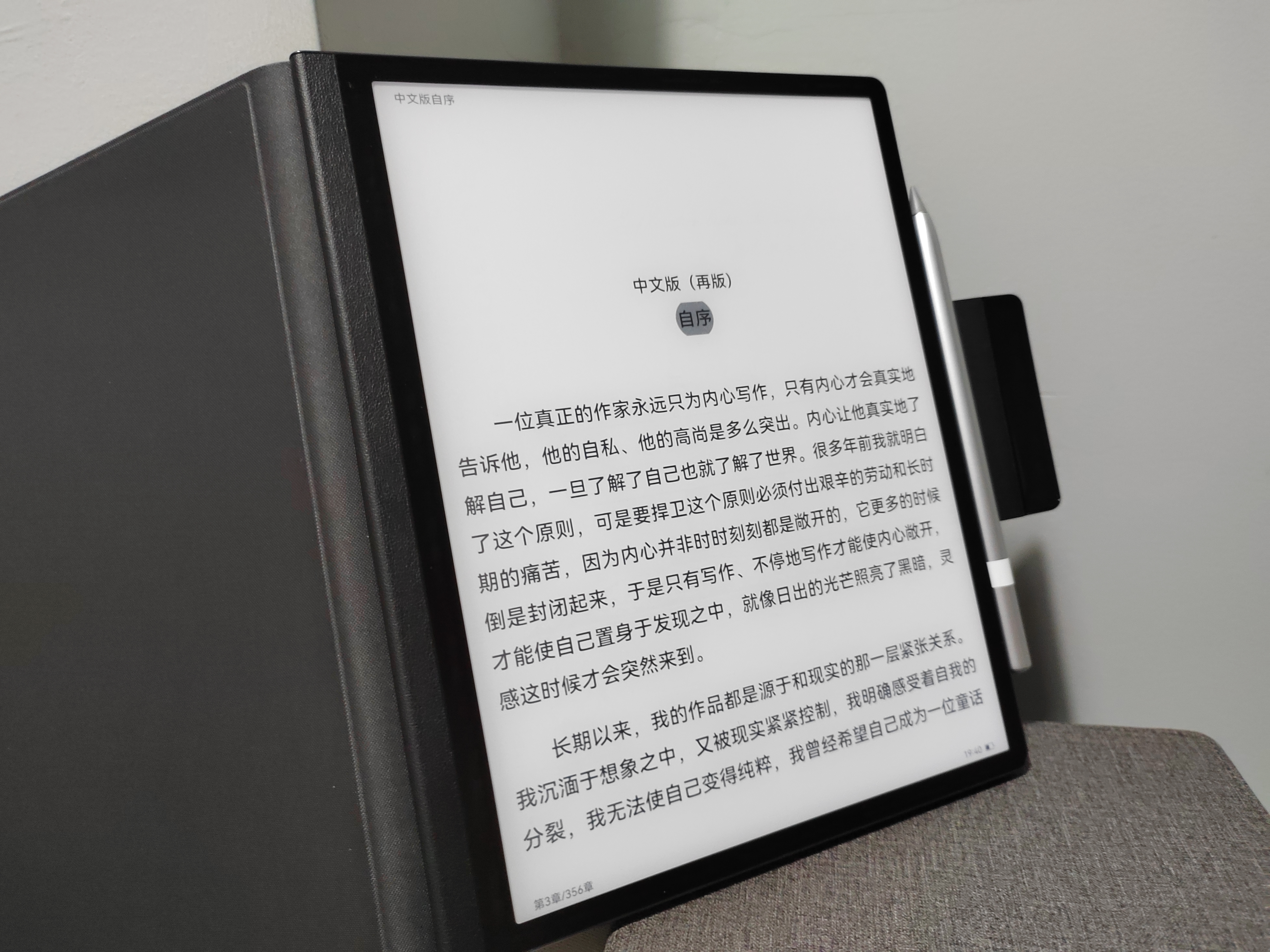 盒子里附送了一支M-Pencil二代,这支M-Pencil用的是非透明的笔尖,在墨水屏上书写时会有类似在纸张书写的阻尼感,能听到沙沙摩擦的声音,格外带感。